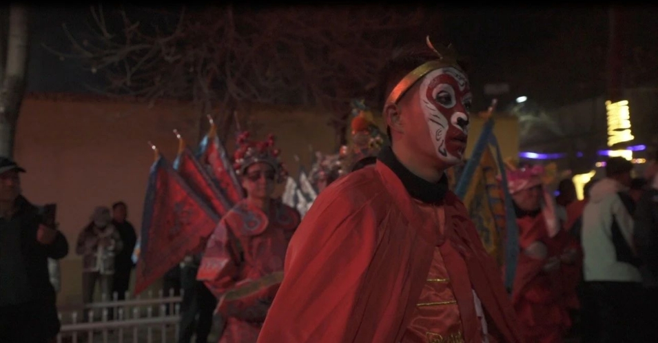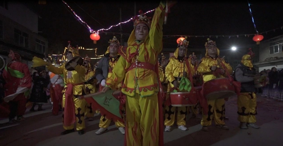 烟花鞭炮放起来,金锣鼙鼓敲起来。正月初八,太阳刚刚落山,一声声清脆的鼓点传来,徐家寨村一年一度的夜社火正式开演了。