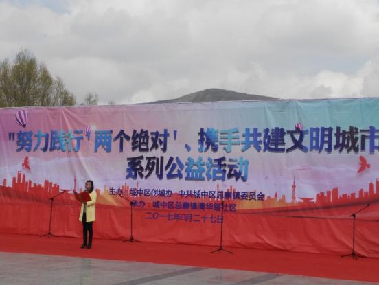 4月27日,城中区创城办联合总寨镇党委、清华路社区,在人民广场开展“努力践行‘两个绝对’携手共建文明城市”系列主题活动,营造“全民参与 共同创建”的浓厚氛围,不断提升群众对创城工作的支持率和参与率。