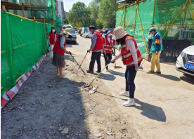 卫生整治“不添乱”。海晏路社区的老旧小区改造如火如荼的进行着,随处可见的脚手架、安全网,给社区环境“添了一分乱”,社区组织党员志愿者在辖区内开展环境卫生大整治活动。志愿者们直面“烤”验,扫垃圾、捡烟头、拾塑料瓶、擦广告牌等等。同时,社区志愿者向小区保安、保洁、施工人员宣传创城知识,确保各项工作落实落小落细。社区改造虽“乱”而卫生“洁”,使老旧小区改造有序推进。