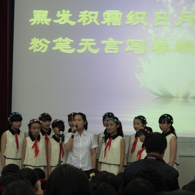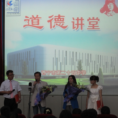 为了弘扬全体师生热爱学校、奉献学校的精神,结合西宁市教育系统“道德讲堂”的开展,5月27日,西宁市第二十五中学举行了主题为“热爱学校、奉献学校、赞美学校”道德讲堂活动。“道德讲堂”在同学们合唱的《萤火虫》中开始,青年教师代表冉丽娟结合实际工作经历和亲身感受讲述了自己的故事, 老教师代表杨佩红回顾了1993年参加工作时的情境,教师们兢兢业业的工作态度,深深的感染了在座的教师和同学们。随后,主持人邀请前任校长及老教师代表畅谈了对学校发展的感悟和展望。老师们朗诵自创诗《信仰在心中》,表达了二十五中艰辛的发展历史,讴歌了教师们的敬业精神和对教育事业的忠诚。学校三位校长提出了思路决定出路,实力展现魅力。最后,教师们在明天会更好的歌声中,祝福二十五中明天会更好。