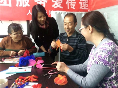 图为熟悉绢花技术的老师正在为残疾人授课(图片来源:西宁晚报)