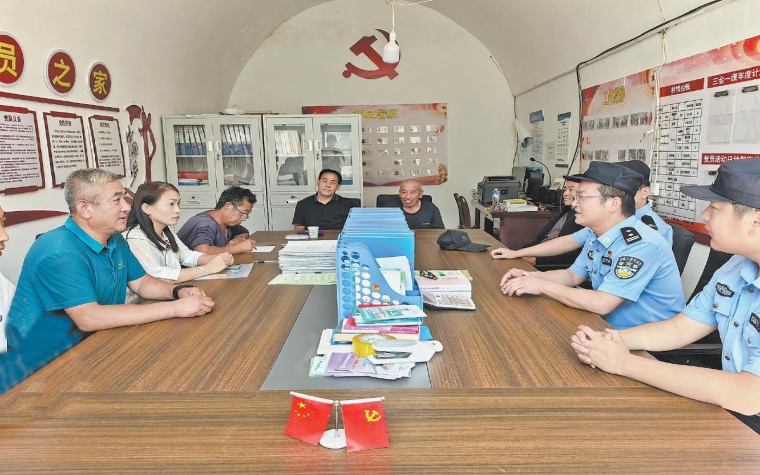 通镇派出所民警和贺家坬村村干部座谈,加强联动机制。陈静仁 摄