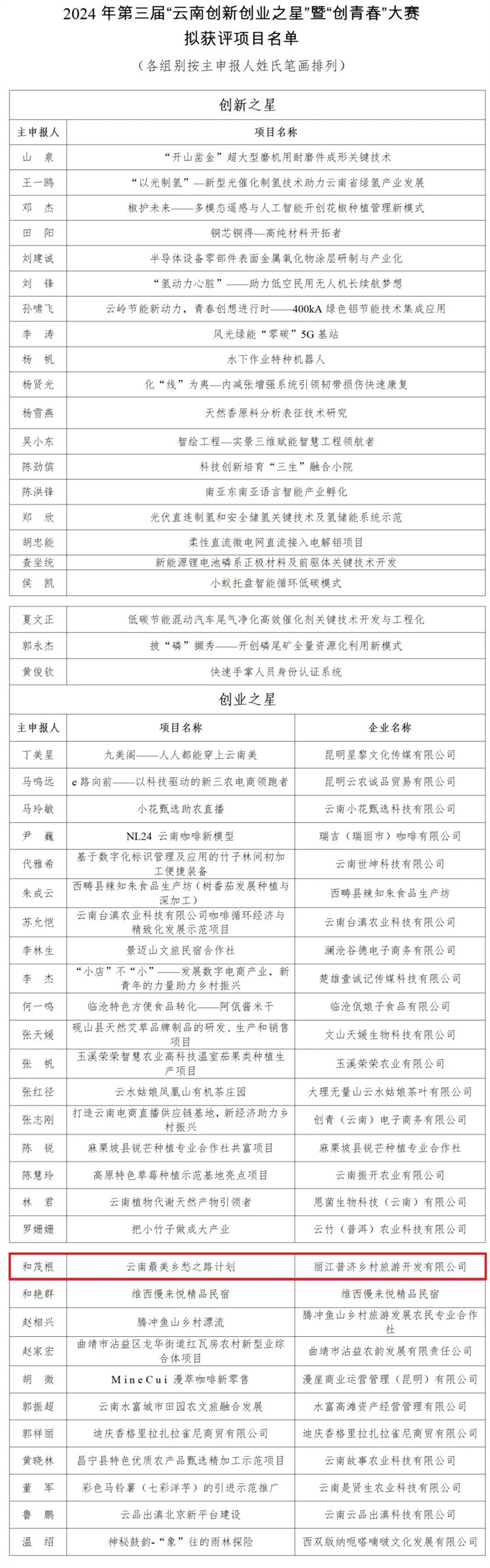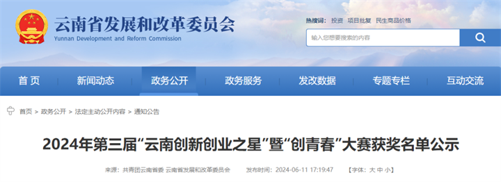 《2024年第三届“云南创新创业之星”暨“创青春”大赛获奖名单公示》