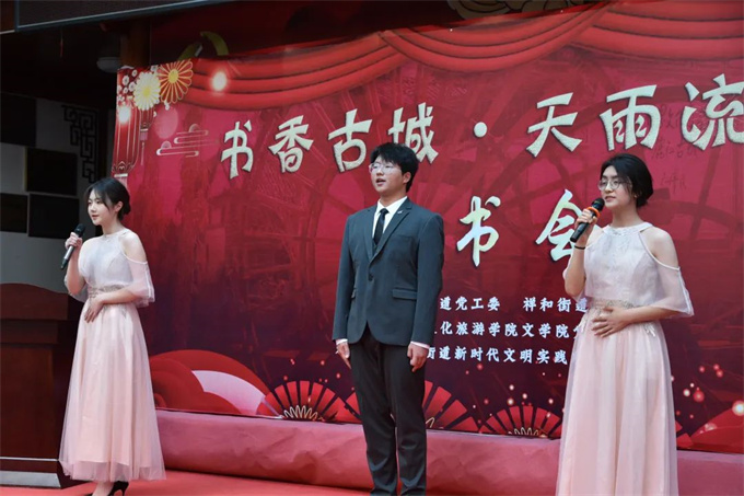 现场,丽江beplay官网app 旅游学院文学院的同学们给大家先后诵读了《满江红》《木兰辞》,时而豪迈奔放,时而含蓄委婉,用饱含激情的诵读生动诠释了中华经典的魅力,带领大家感受到了国学诗词的丰富内涵和人文哲理。读书分享:思想交流、分享智慧