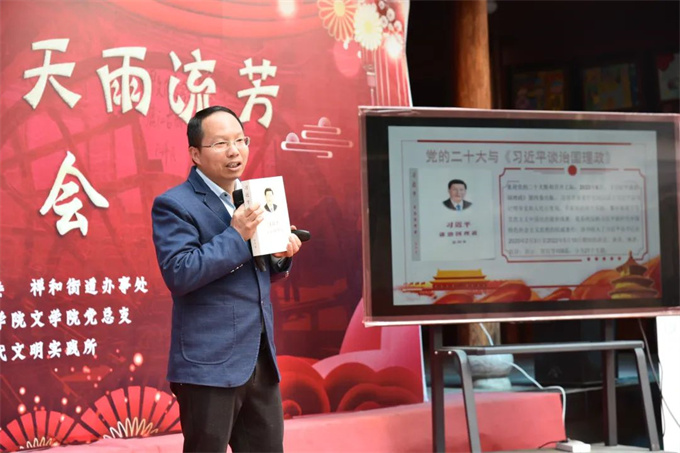 4月21日,古城之窗祥和街道2023年世界读书日“书香古城·天雨流芳”读书分享会活动在祥和街道新时代文明实践所举行。