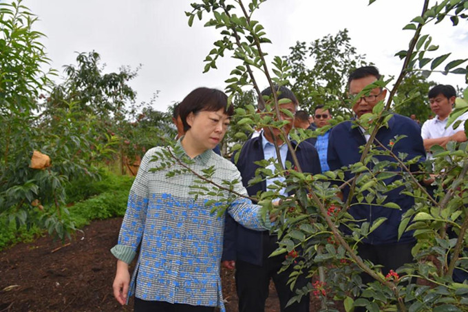 随后,浦虹来到代学文家的果园。他家的果园有六七十亩,种了苹果、花椒、雪桃、梨,每年收入达30多万元。“是党的好政策,让我这个残疾人过上了好日子。”代学文感慨地说。了解了果园的种植、经营情况,浦虹祝愿他家的日子越过越红火。