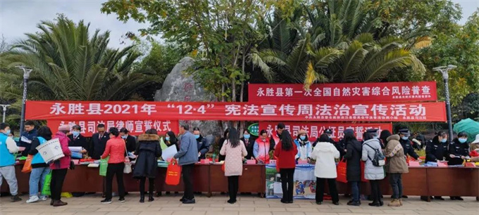 在全国第8个全国宪法宣传日来临之际,永胜县各级各部门纷纷开展国家宪法日宣传活动,宣传习近平法治思想和社会主义法治理念,弘扬社会主义法治精神,引导广大群众自觉守法,营造遇事找法、解决问题靠法的良好法治氛围。
