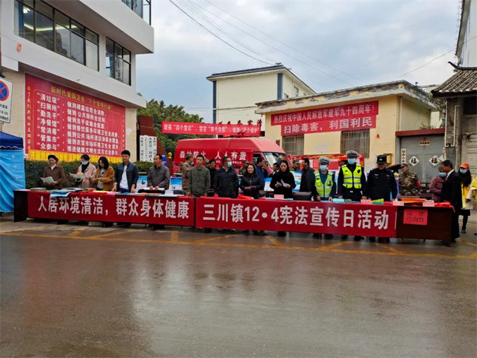 12月4日,三川镇人民政府开展三川镇“12·4”全国宪法日宣传教育活动,进一步提高三川镇居民对国家宪法的认知率,调动辖区群众学法用法的积极性,引导辖区群众树立正确的法治意识,营造“平安三川、法治三川” 创建良好法治环境。活动围绕“大力弘扬法制精神,共筑伟大中国梦”主题,向群众发放法制年画400余份、宣传小册子1600余份、宣传资料2000余份,接受群众咨询20余次,受到群众一致好评。